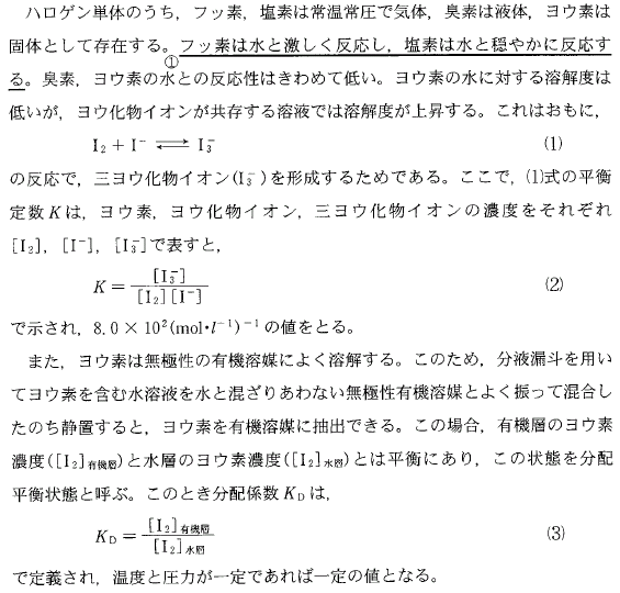 ★有機層と水層の間の分配平衡に関する計算問題が的中しました。